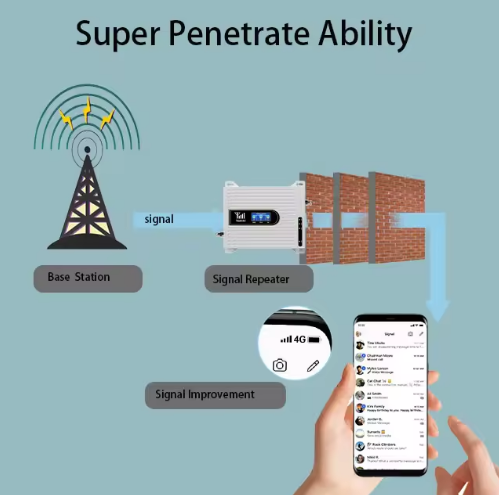 我们的三频手机信号增强器旨在消除家庭、办公室或小型商业场所的通话中断、数据传输缓慢和信号接收不良问题。它通过增强900MHz、1800MHz和2100MHz影响的2G、3G和4G LTE信号,确保所有主流网络标准的可靠移动连接。